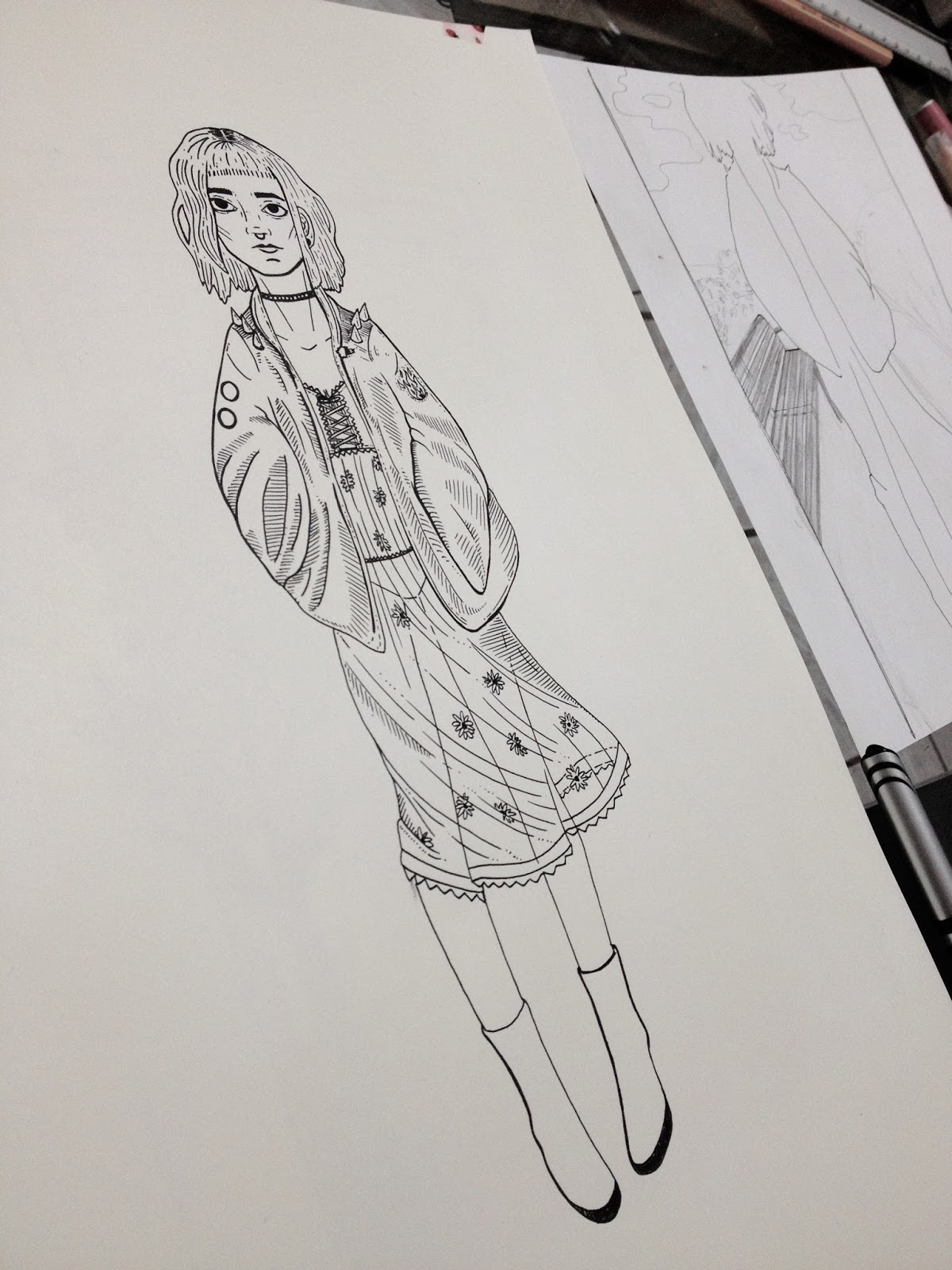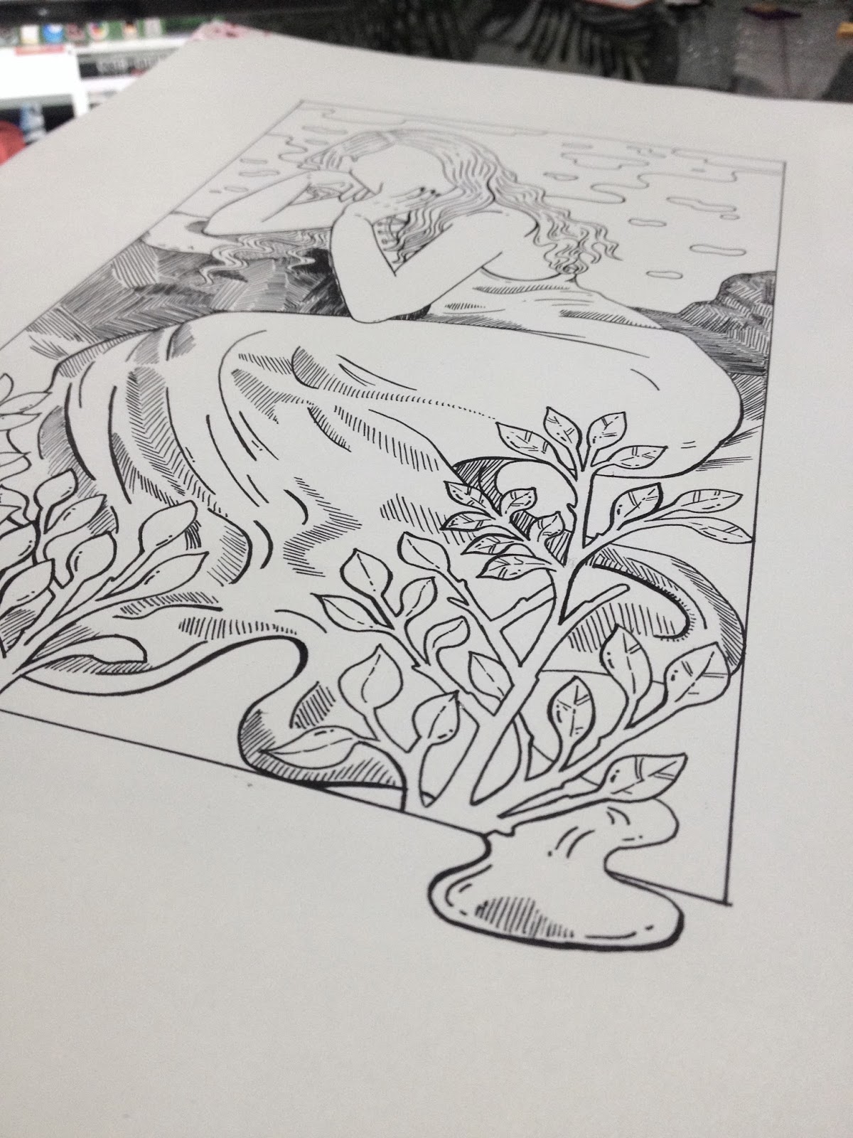 Dibujo, Café y lluvia / Speed Drawing (Ink) ~ Taily